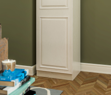 Фасад, карнизы: ЛМДФ и окутаны плёнкой ПВХ РоялВуд Светлый.