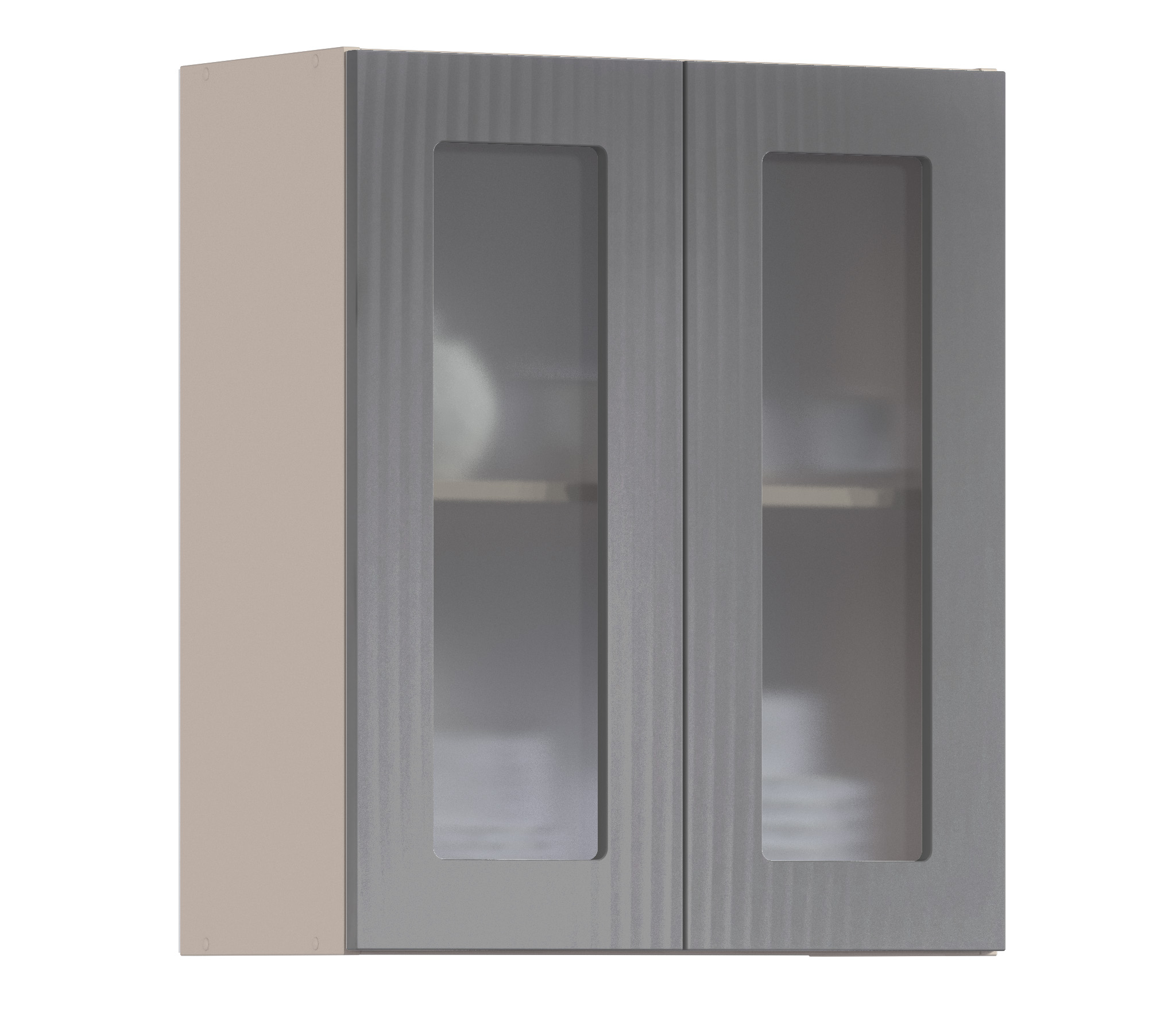 Роял шкаф навесной со стеклом 2 дв 60х72 см (Песочный/Графит)