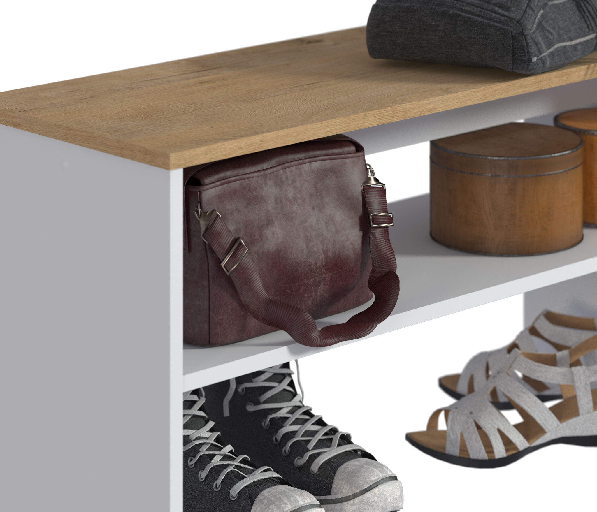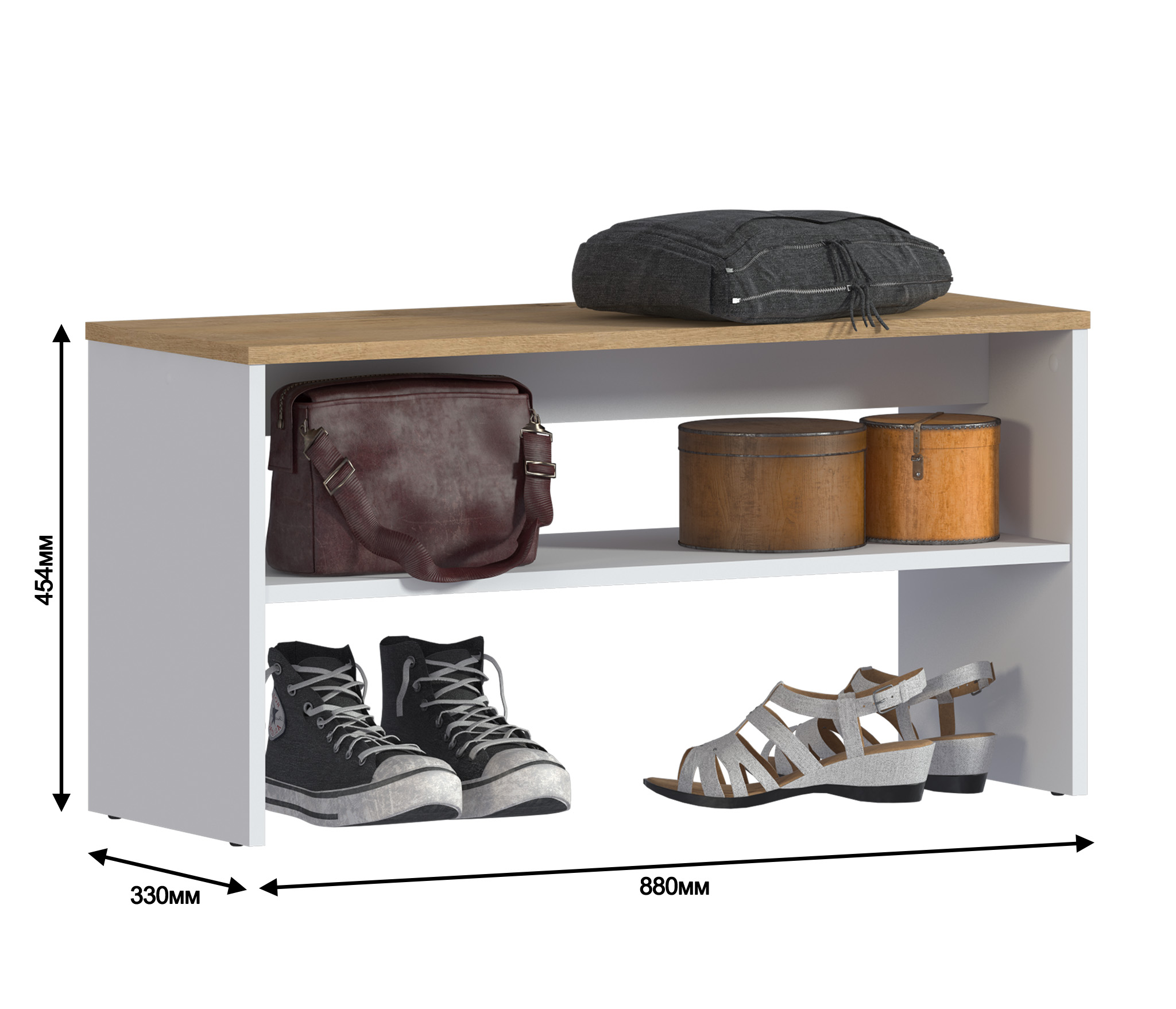 Очень вместительная тумба для обуви имеет сиденье для удобства при обувании.