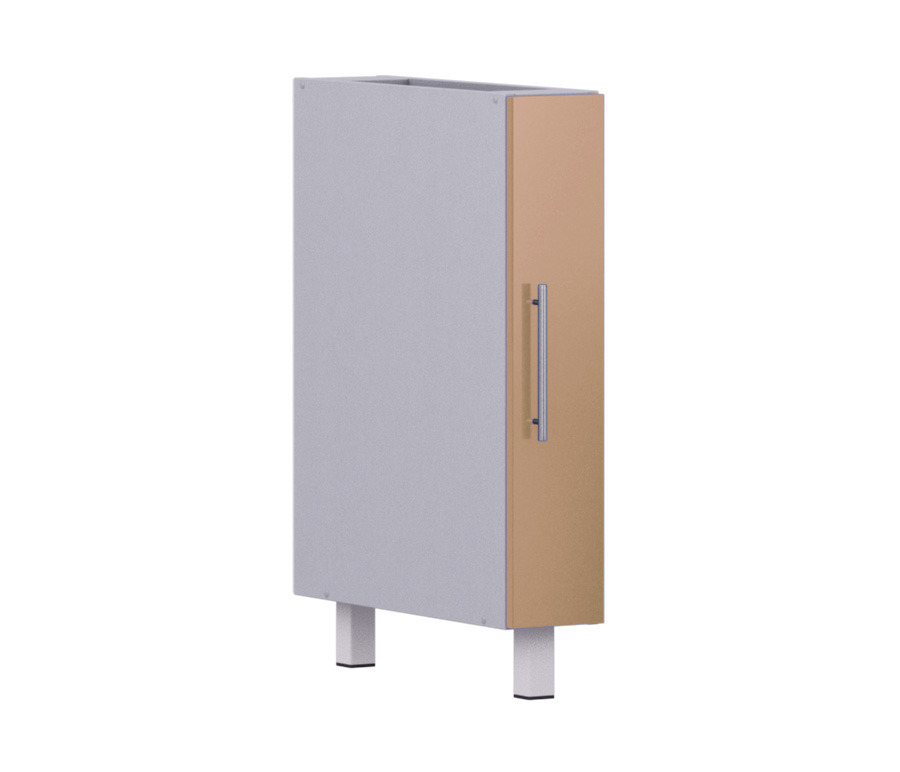 Узкая секция в современном стиле хорошо дополнит вашу кухонную систему. Изготовлена с использованием долговечных экологически чистых материалов. Внутри есть два отделения. Данный стол подходит для хранения различной кухонной утвари, моющих средств. Имеет одну опору. Модель выпускается в нескольких цветах.