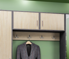 Докупали две полки к имеющейся прихожей, подошли по цвету фасадной панели Дуб Сонома, цвет действительно приятный, подумываю купить кухню со скидкой такого же цвета, смотрится очень даже. Муж собрал в два счета, все эксцентрики, шпунты, все на месте. Было бы место в прихожей, купили бы еще парочку.