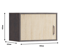 Выполнена полка из современного и прочного КДСП. Цвет оформления комбинированный. Корпус облицован пленкой в цвете «Венге». А поверхность фасадов в цвете «Дуб Сонома».