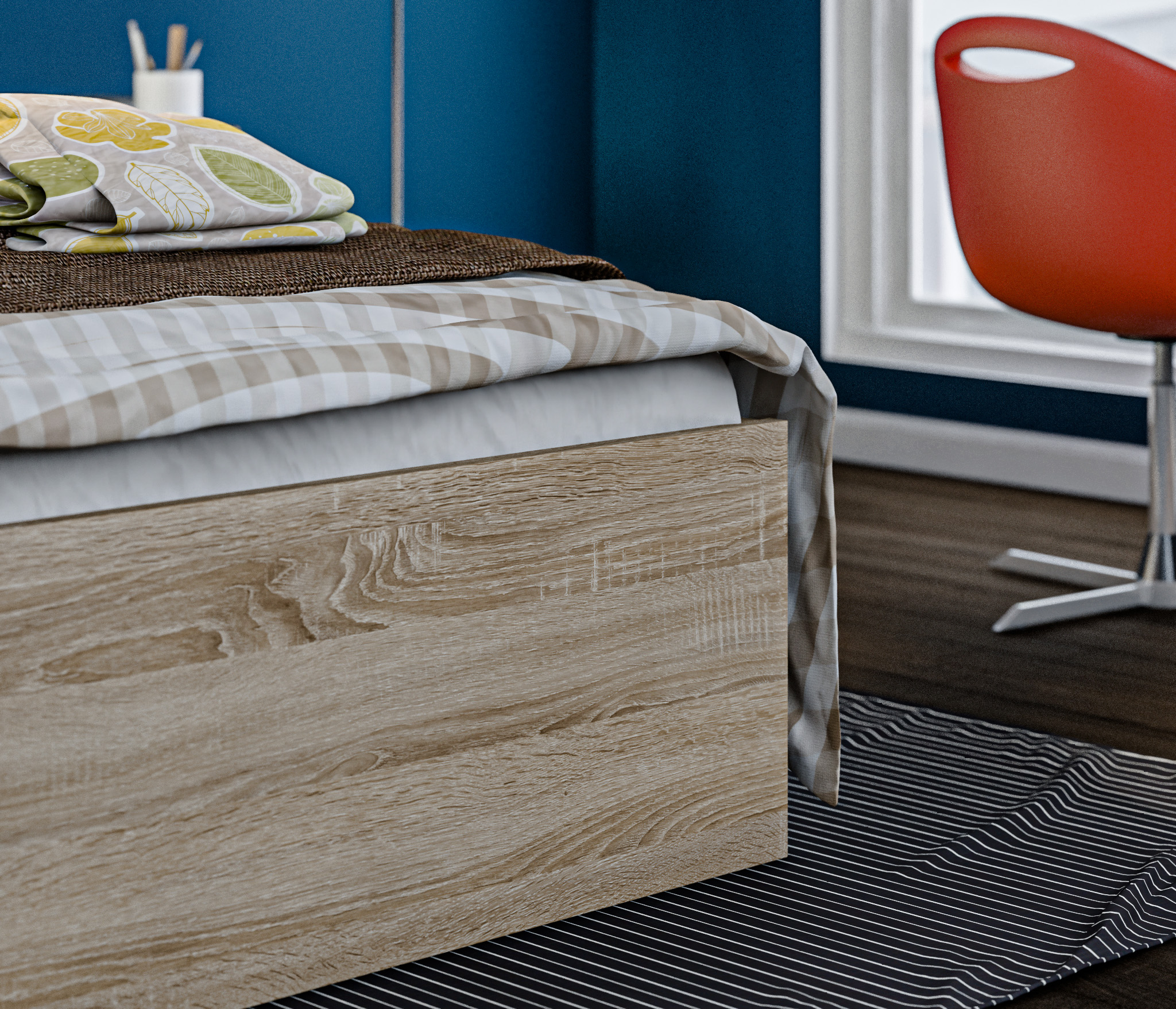 Кровать красиво смотрится, хороший вариант, если нет много денег)