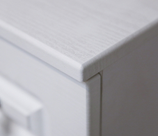 Произведена тумба Амалия из современного прочного КДСП, фрезерованные фасады - из МДФ. Цвет оформления - Дуб белый. Материал отделки устойчив к влаге, мелким механическим повреждениям и воздействию бытовых чистящих средств.