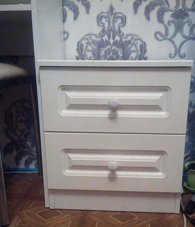 Купила 2 прикроватные тумбочки,осталась очень довольна. фасад очень красивый, не смотрится дешево. Красивый стразик в ручке, как изюминка. Механизм кажется вполне надежным.