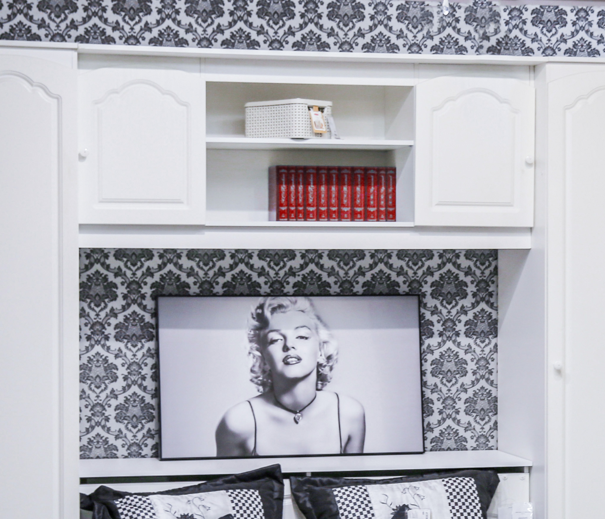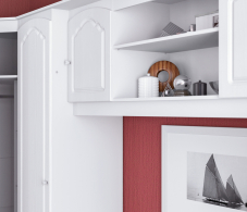 очень красиво смотрится над кроватью.Выбирали по картинке и очень сомневались-нужна ли нам эта надстройка .Но оказалось, что очнь удобно в глубокие ящики убирать пледы, а в нише мы расставили семейные фото-получилось просто замечательно!!!