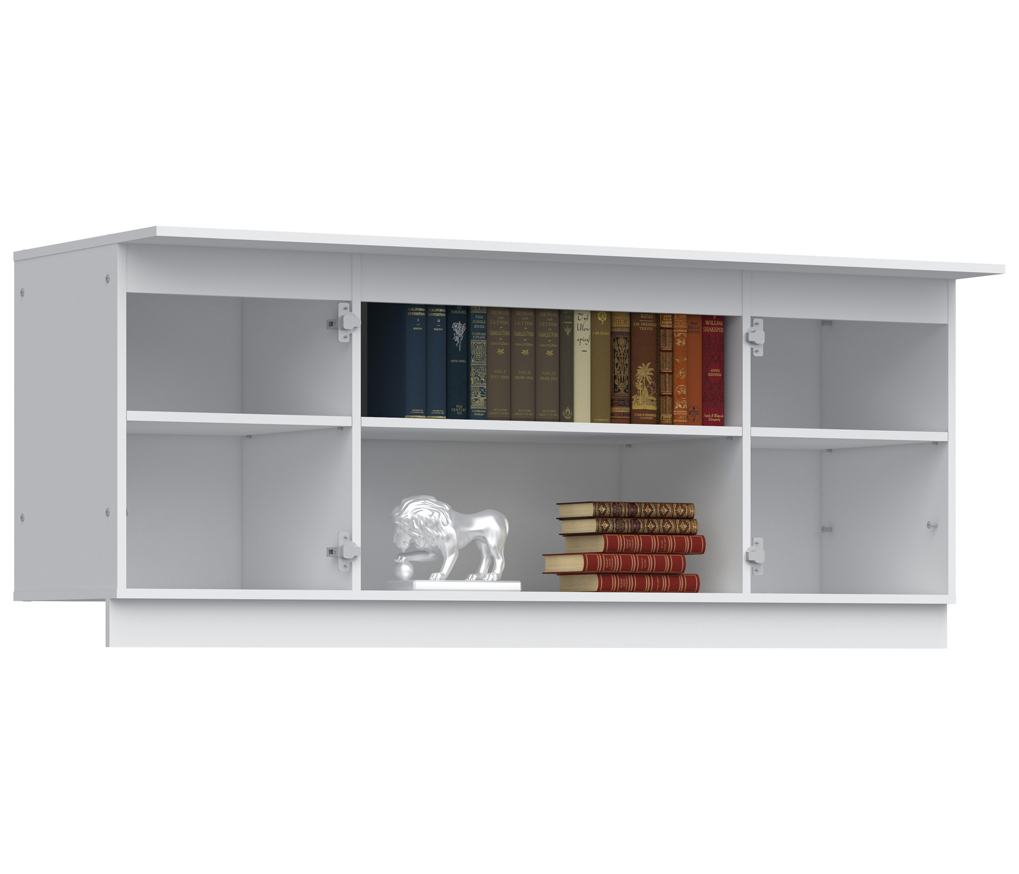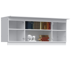 Габаритные размеры – ширина 165 см, высота 67 см и глубина 58 см, далеки от компактных. Это вместительное место хранения. Полка Амалия имеет по центру несколько открытых отделений и два отделения по бокам за отдельными дверцами.