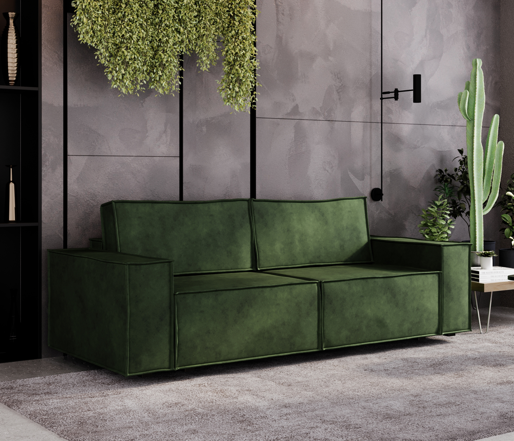 Диван-кровать Лофт, велюр (Зеленый)