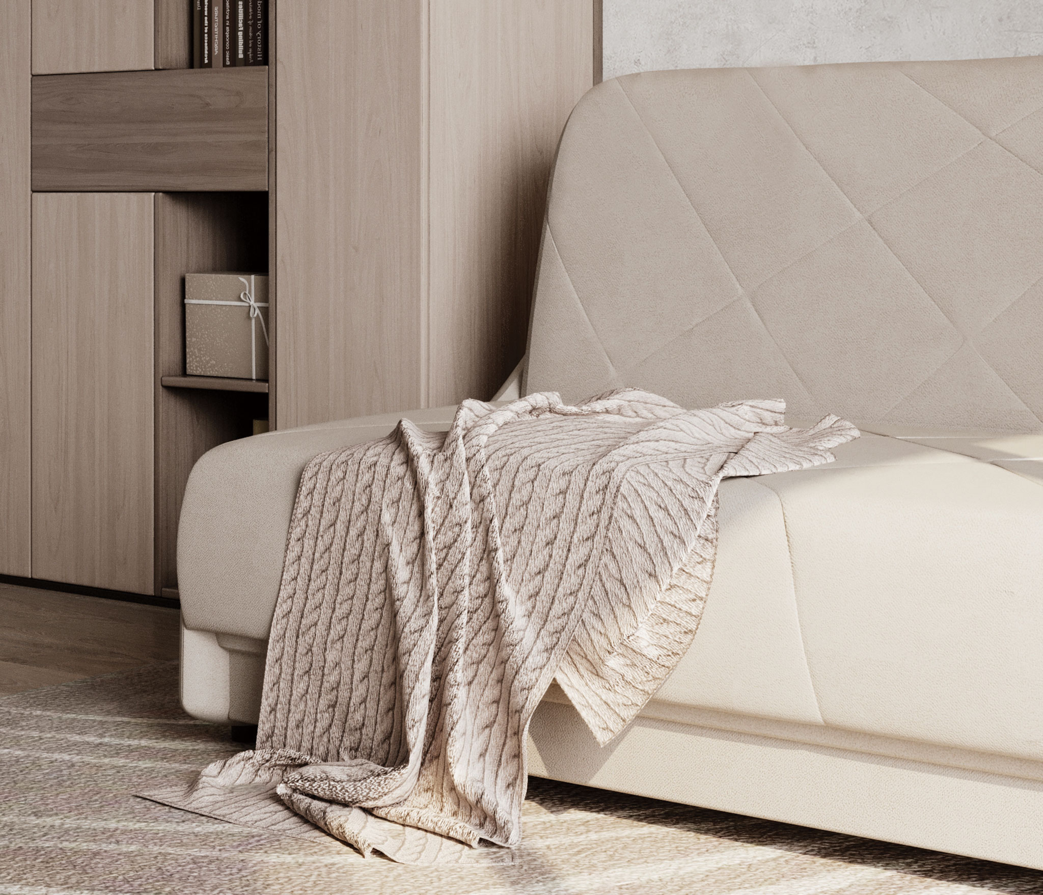 Ткань чехла простегана на периотеке, что придает дополнительный объем и мягкость.