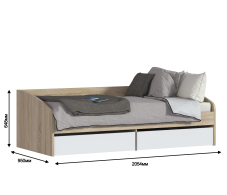 Мамбо СБ-2372 Кровать Дуб Сонома/БелыйМатрас Эко4 200* 90 сер.Эко