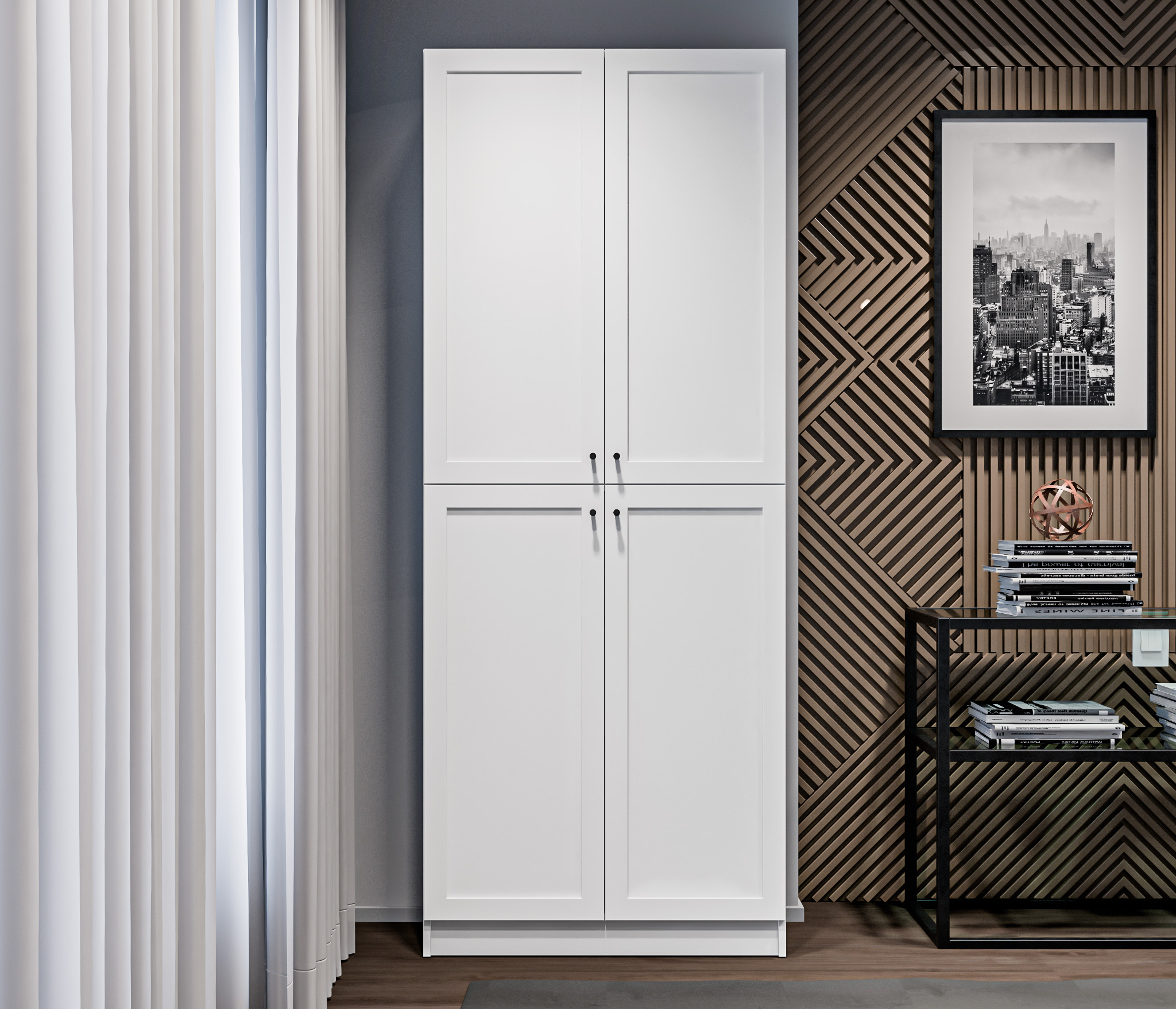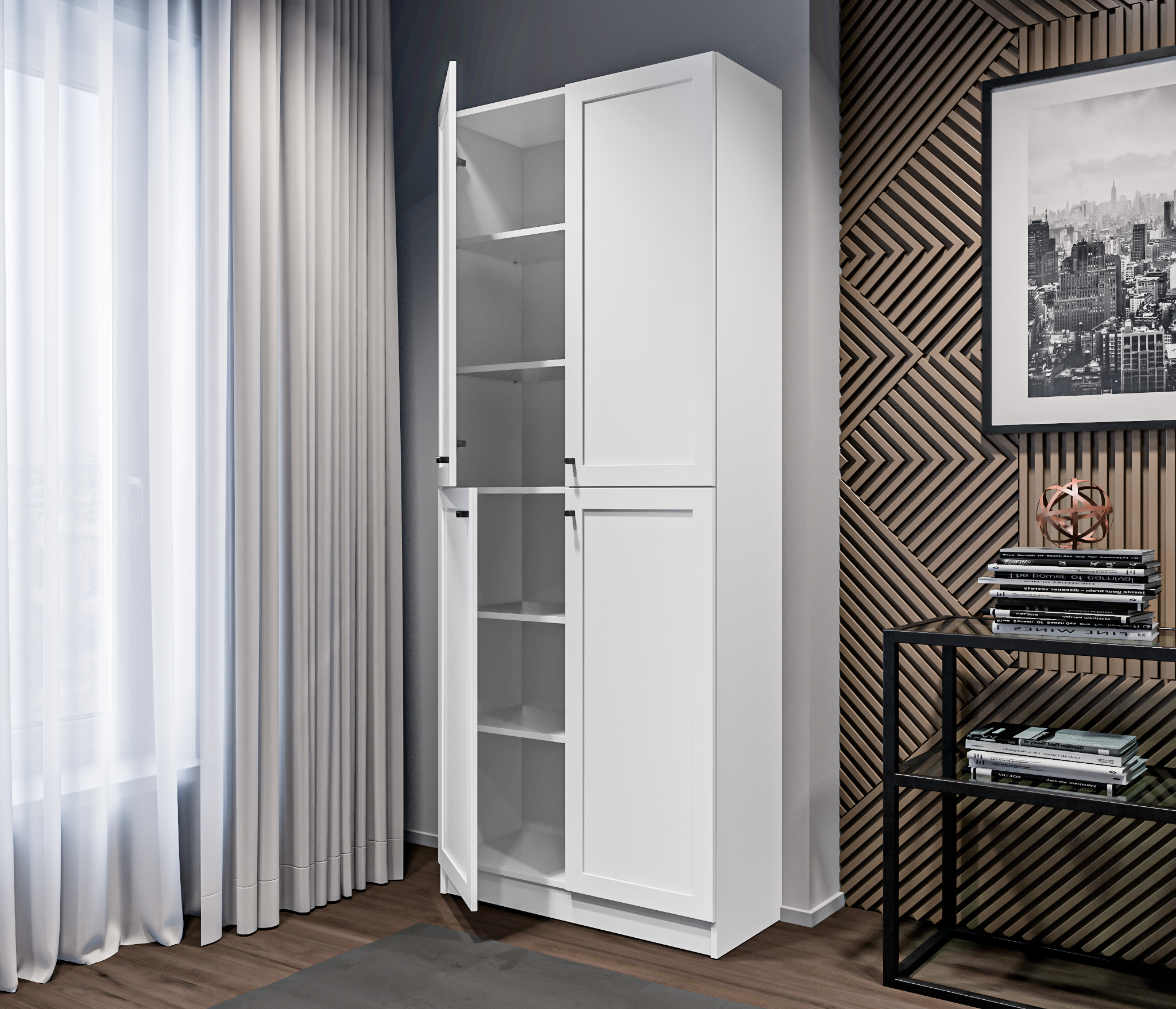 МС Твин предоставляет возможность собрать шкаф или стеллаж по своему вкусу. Вы сами выбираете размеры, цвет ручек: белый или черный, наполнение: ящик или полки. Помимо этого, вы можете решить, оставить фасады глухими или выбрать стеклянные, чтобы добавить прозрачности и легкости в ваш интерьер. Создайте шкаф-стеллаж, который идеально подходит для ваших потребностей и вписывается в ваш стиль.